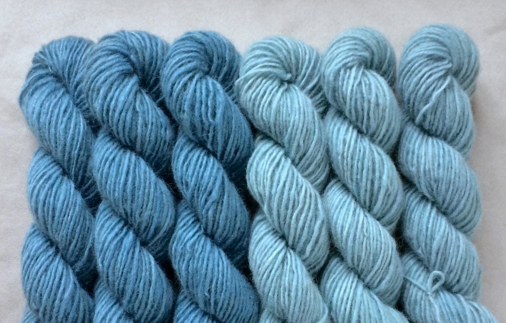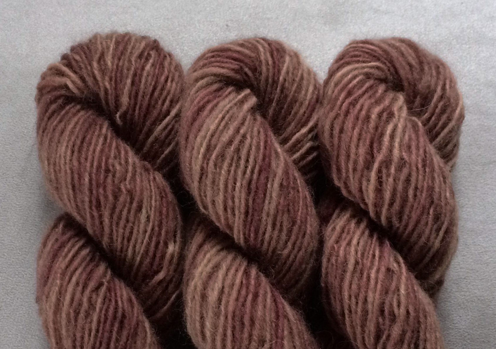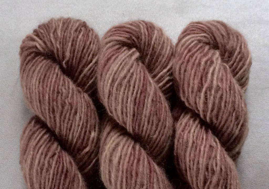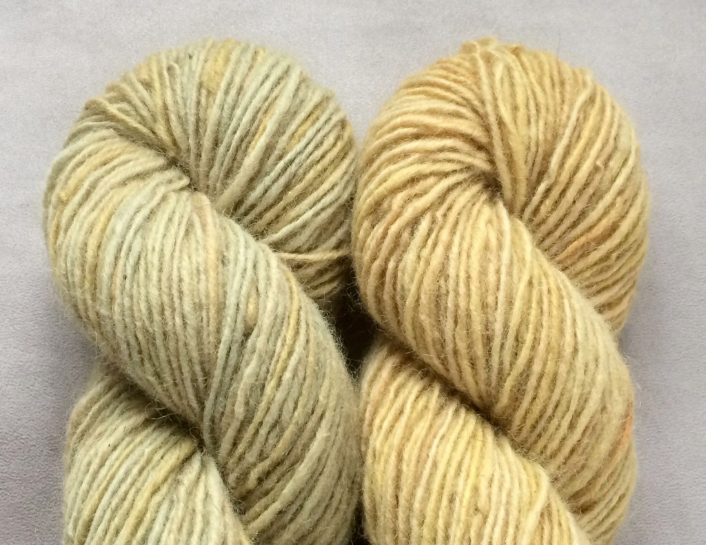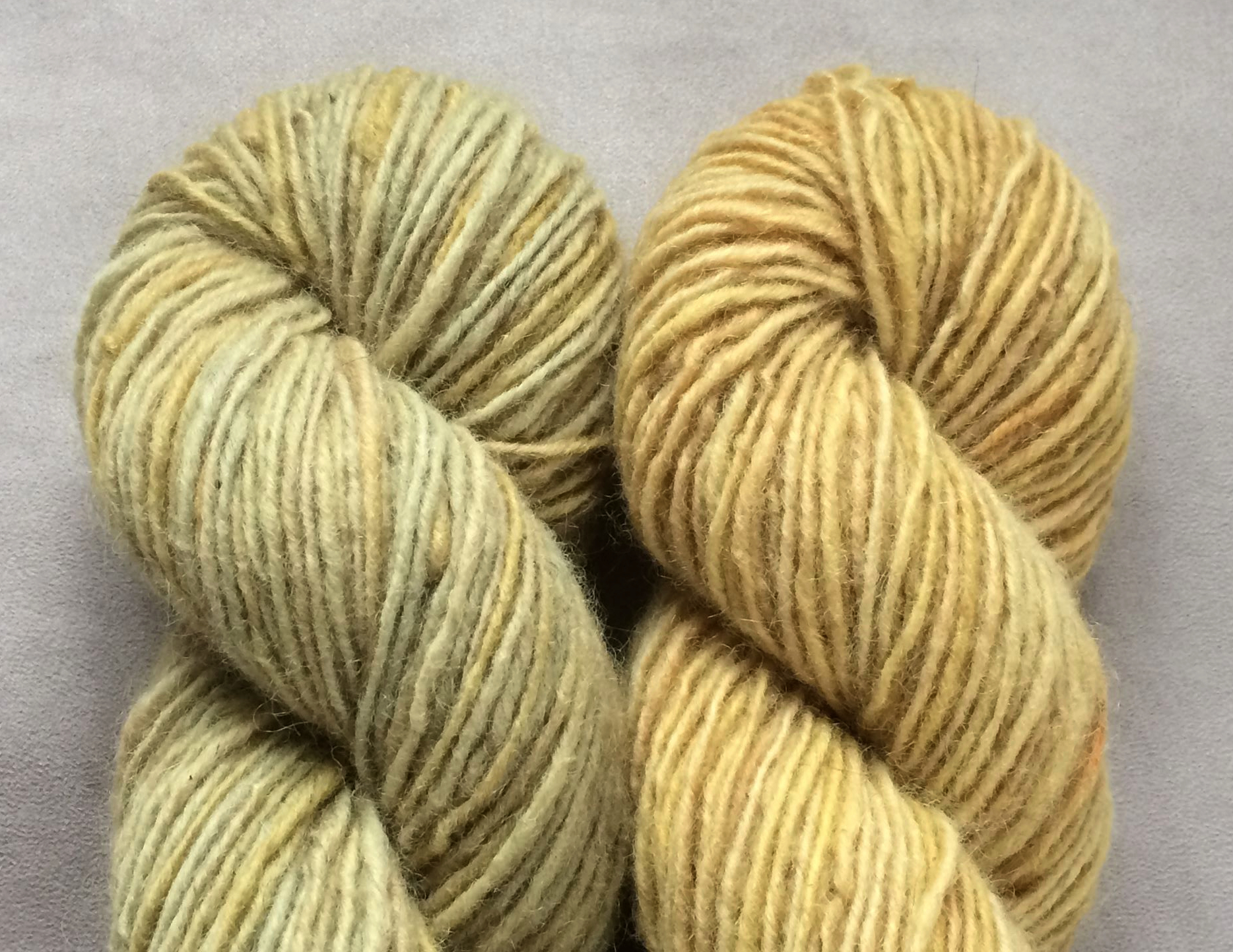Dyes: (1) Alder buckthorn berries and bark (dyed in a jar), (2) hibiscus, yellow flowers, madder, alder buckthorn bark (dyed in a jar)