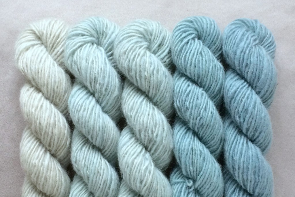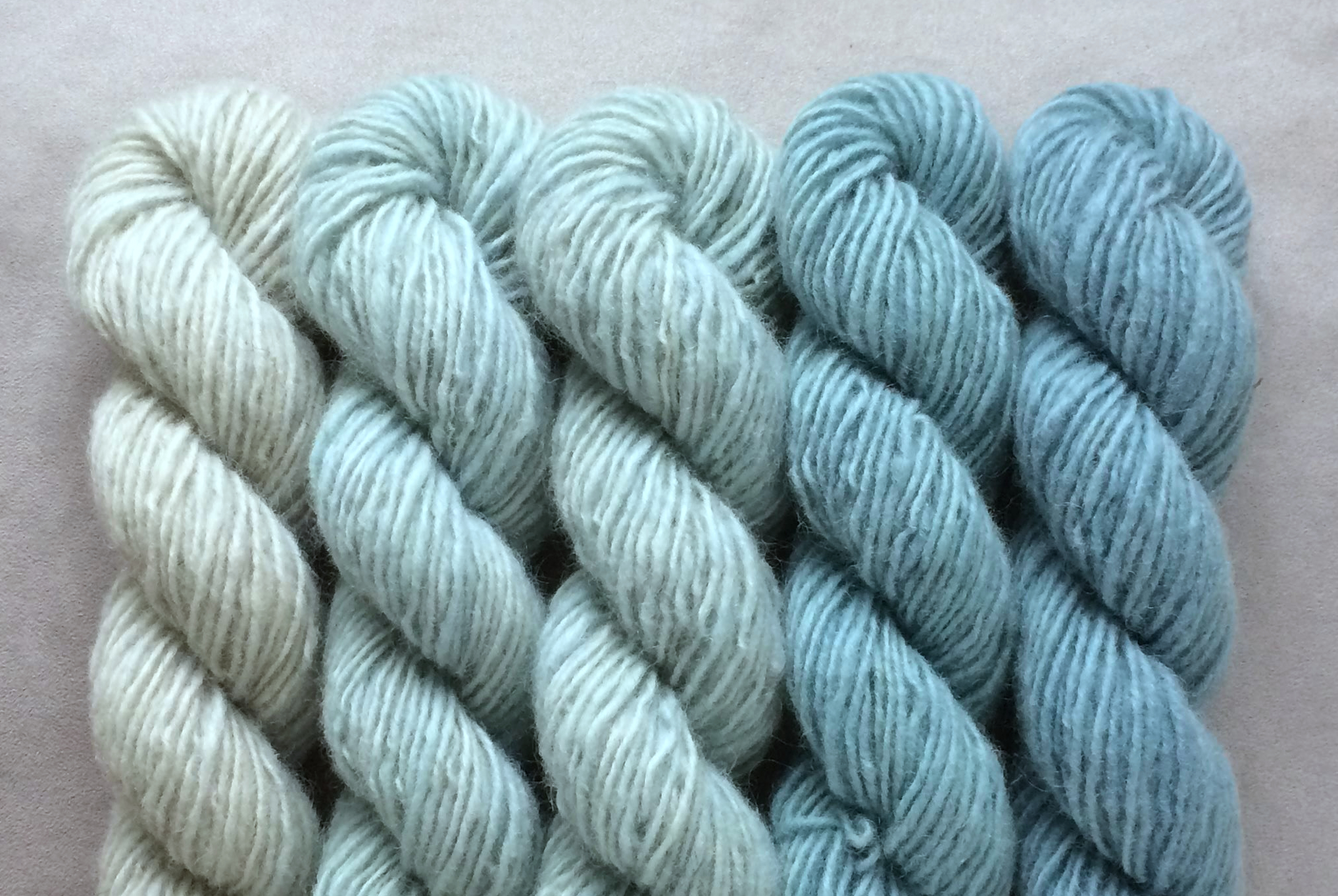 Näiden lankojen pohjavärinä on luonnonvalkoinen karjaalaisen Leuran tilan lampaiden villasta kehrätty löyhäkierteinen, hieman pörröinen lanka. Puikkosuositus 4-5 mm.