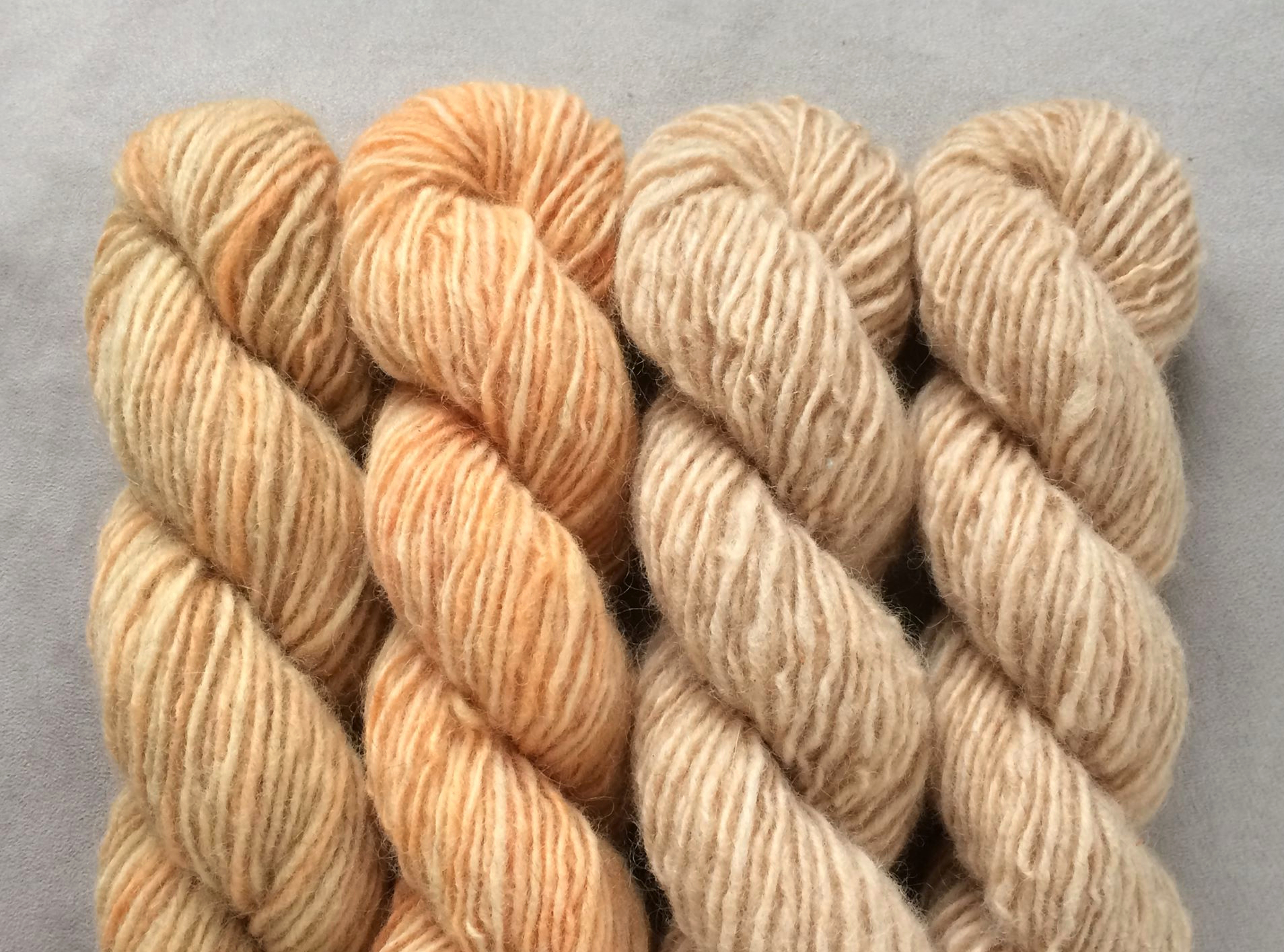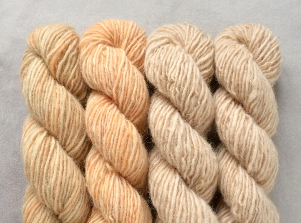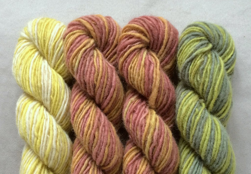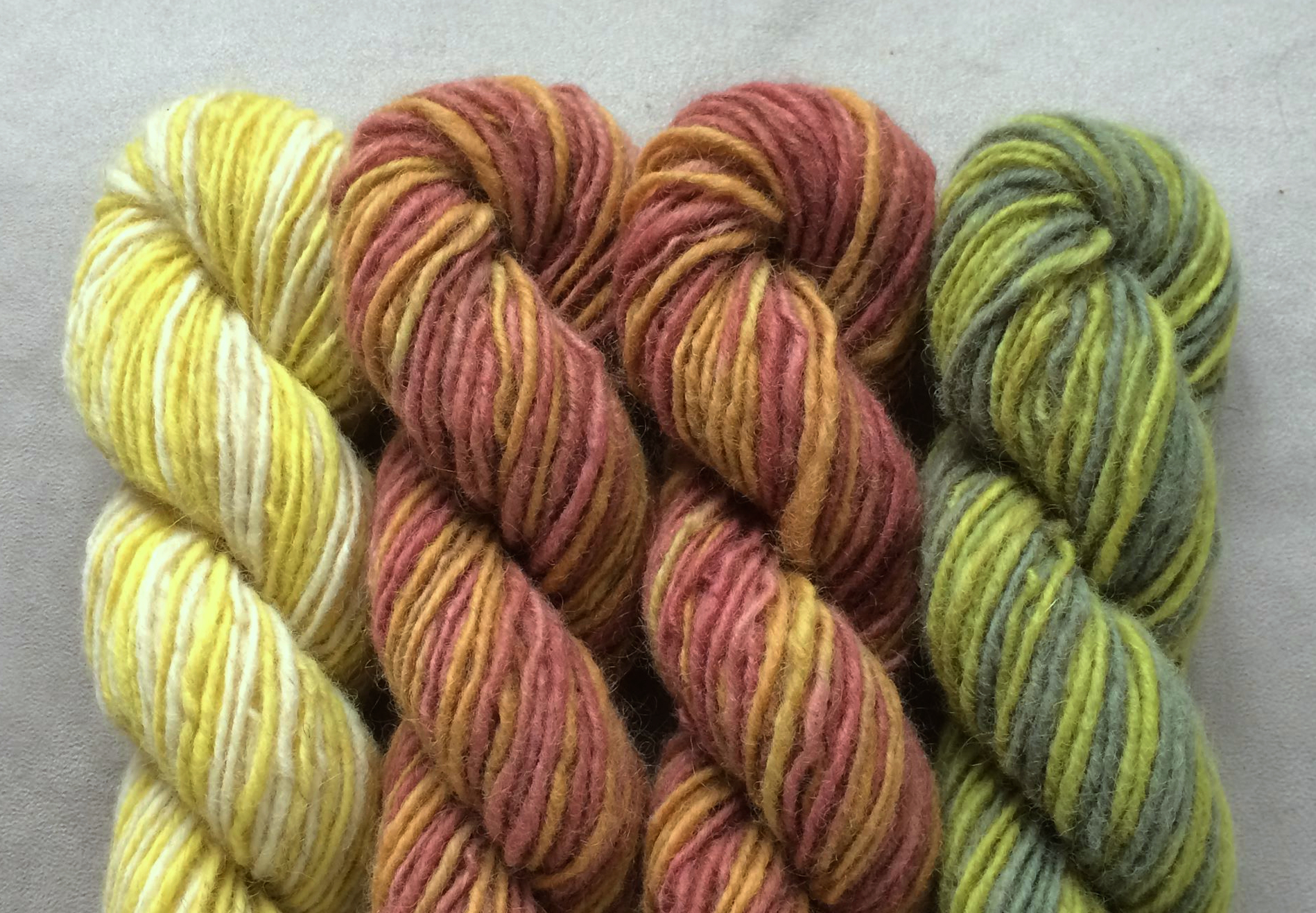 Dyes: (1) Michaelmas Daisy and madder, (2) madder, (3,4) avocado