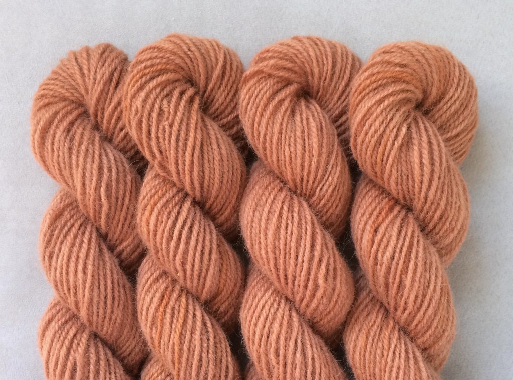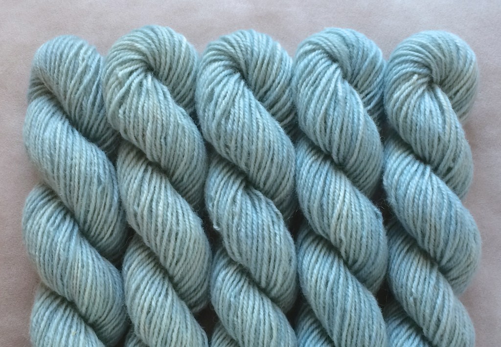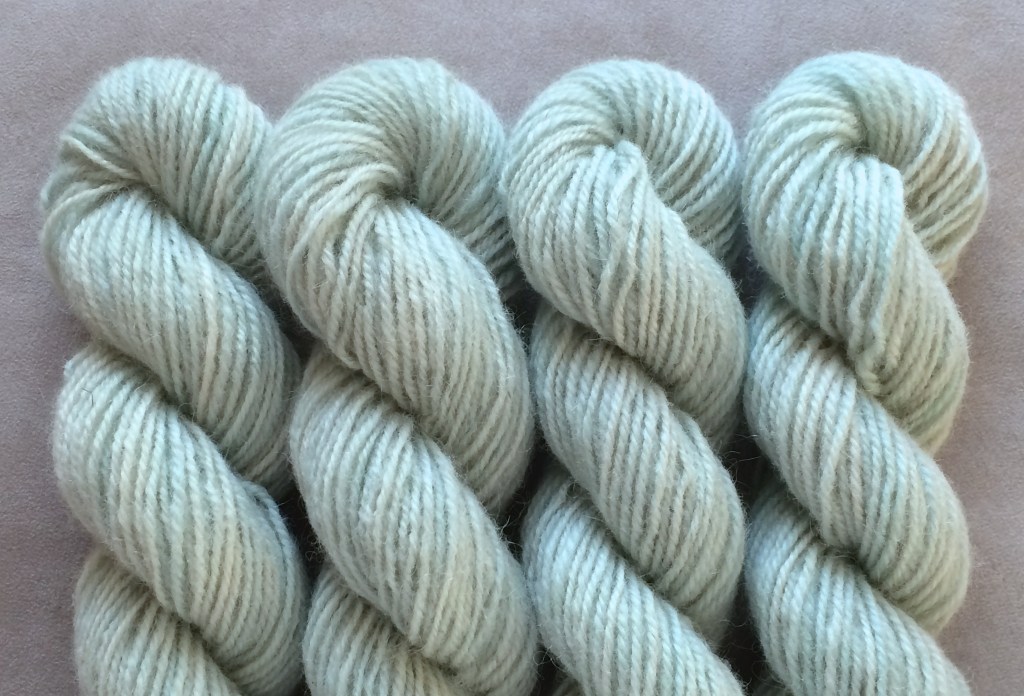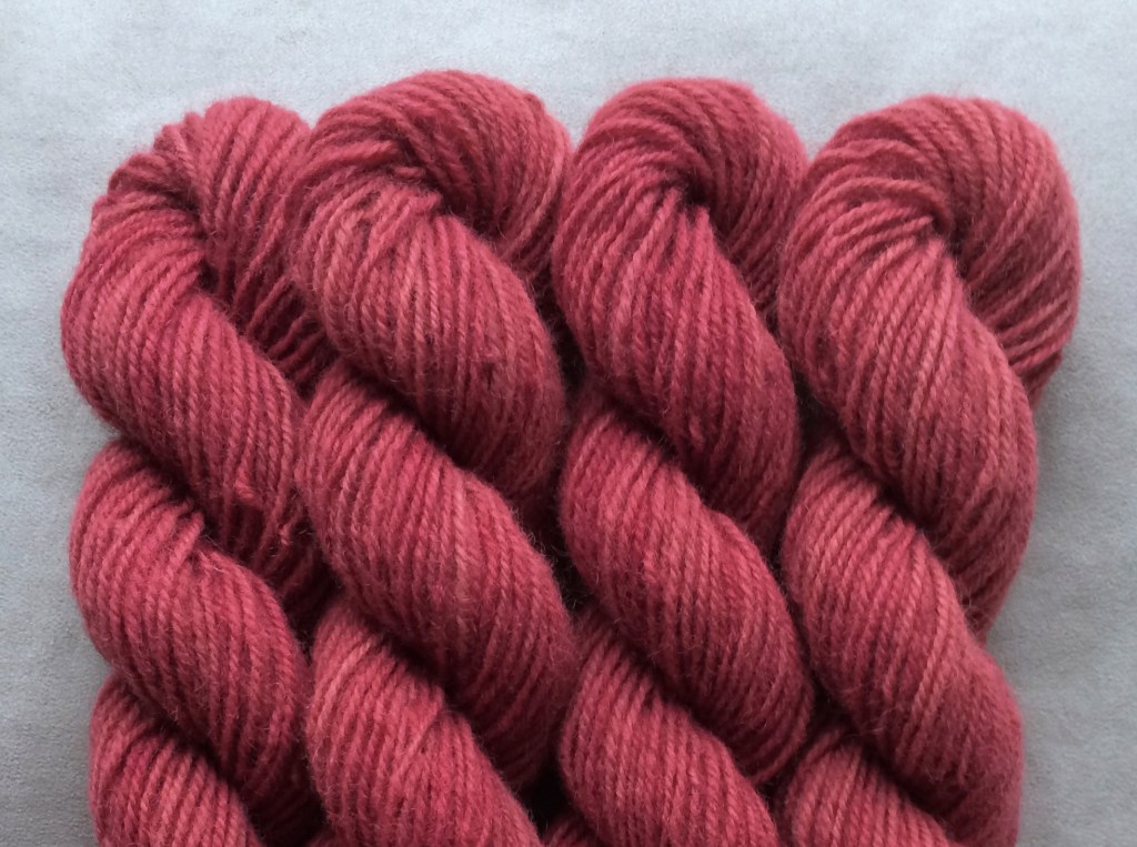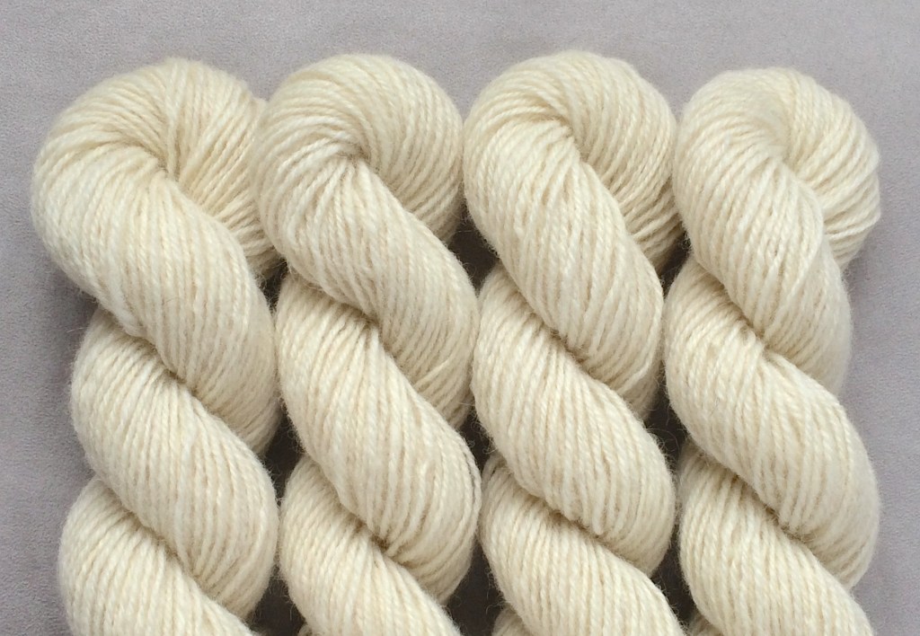 Pirtin kehräämöön aikaisin keväällä 2020 lähetetystä valkoisesta Leuran villasta tuli myöhään syksyllä alle puolet takaisin luonnonvalkoisena, melko tiukkakierteisenä ja aiempaa karheampana lankana. Pesussa se kuitenkin pehmeni huomattavasti, ja mikä tärkeintä, väri siihen tarttui hyvin. Puikkosuositus 3-4 mm.