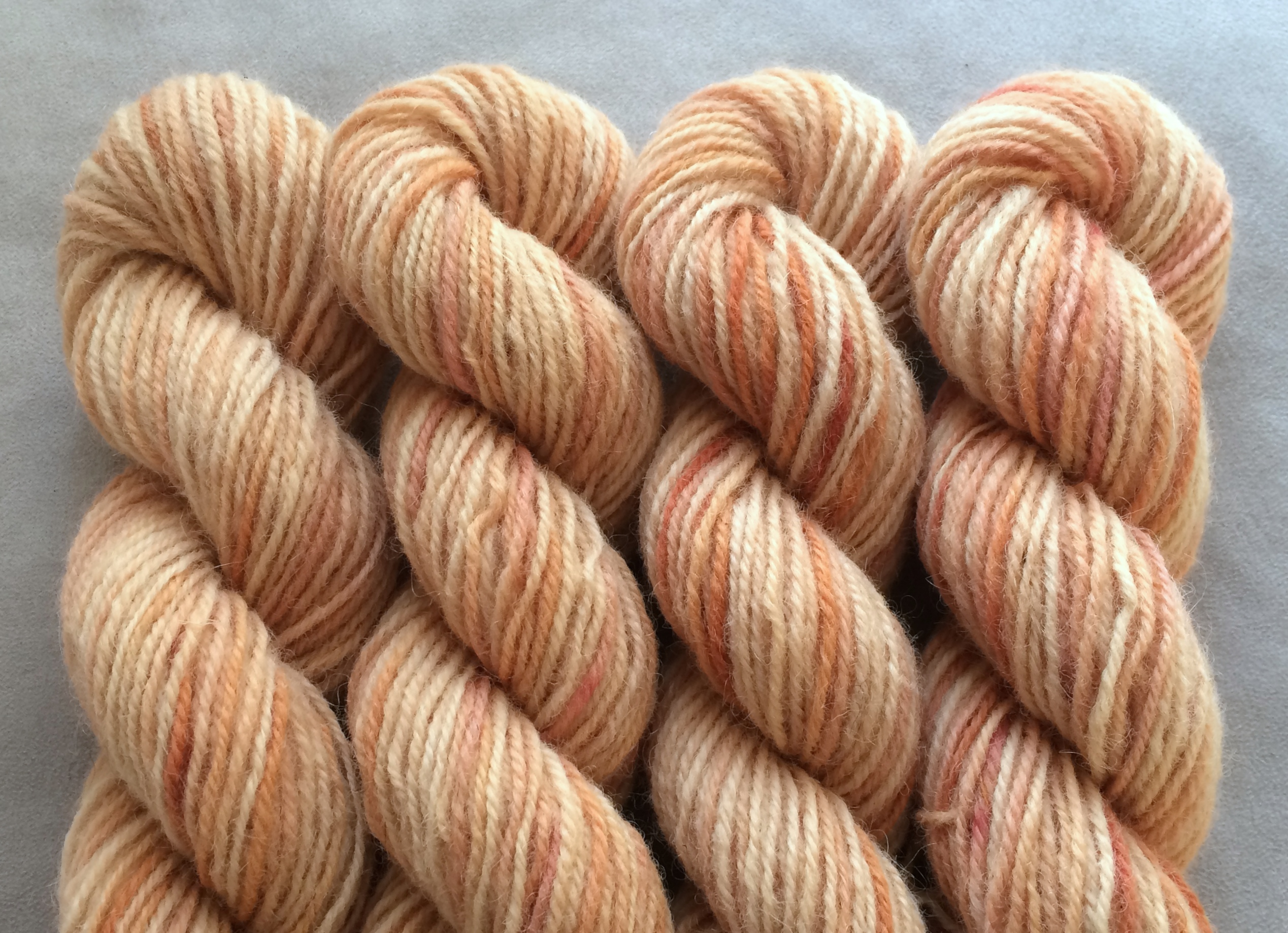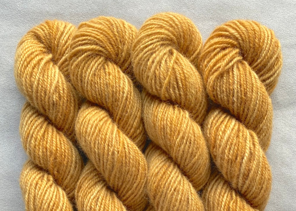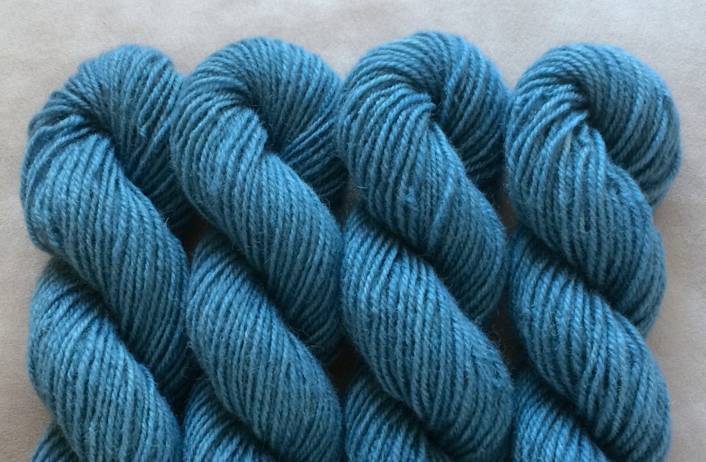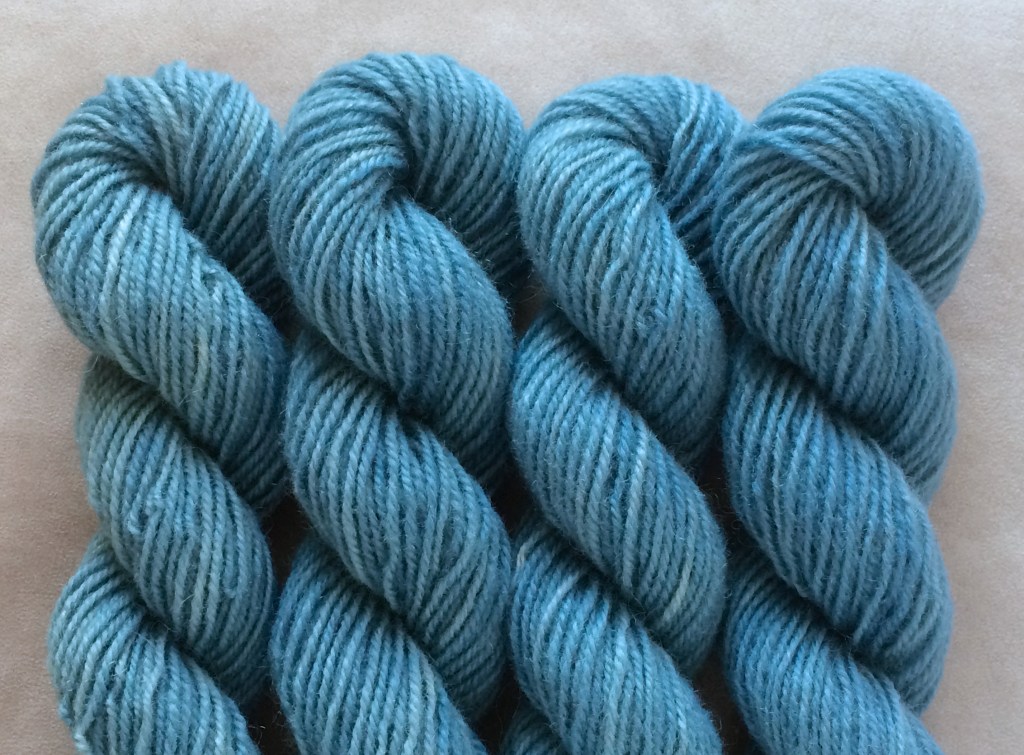 Pirtin kehräämöön aikaisin keväällä 2020 lähetetystä valkoisesta Leuran villasta tuli myöhään syksyllä alle puolet takaisin luonnonvalkoisena, melko tiukkakierteisenä ja aiempaa karheampana lankana. Pesussa se kuitenkin pehmeni huomattavasti, ja mikä tärkeintä, väri siihen tarttui hyvin. Puikkosuositus 3-4 mm.