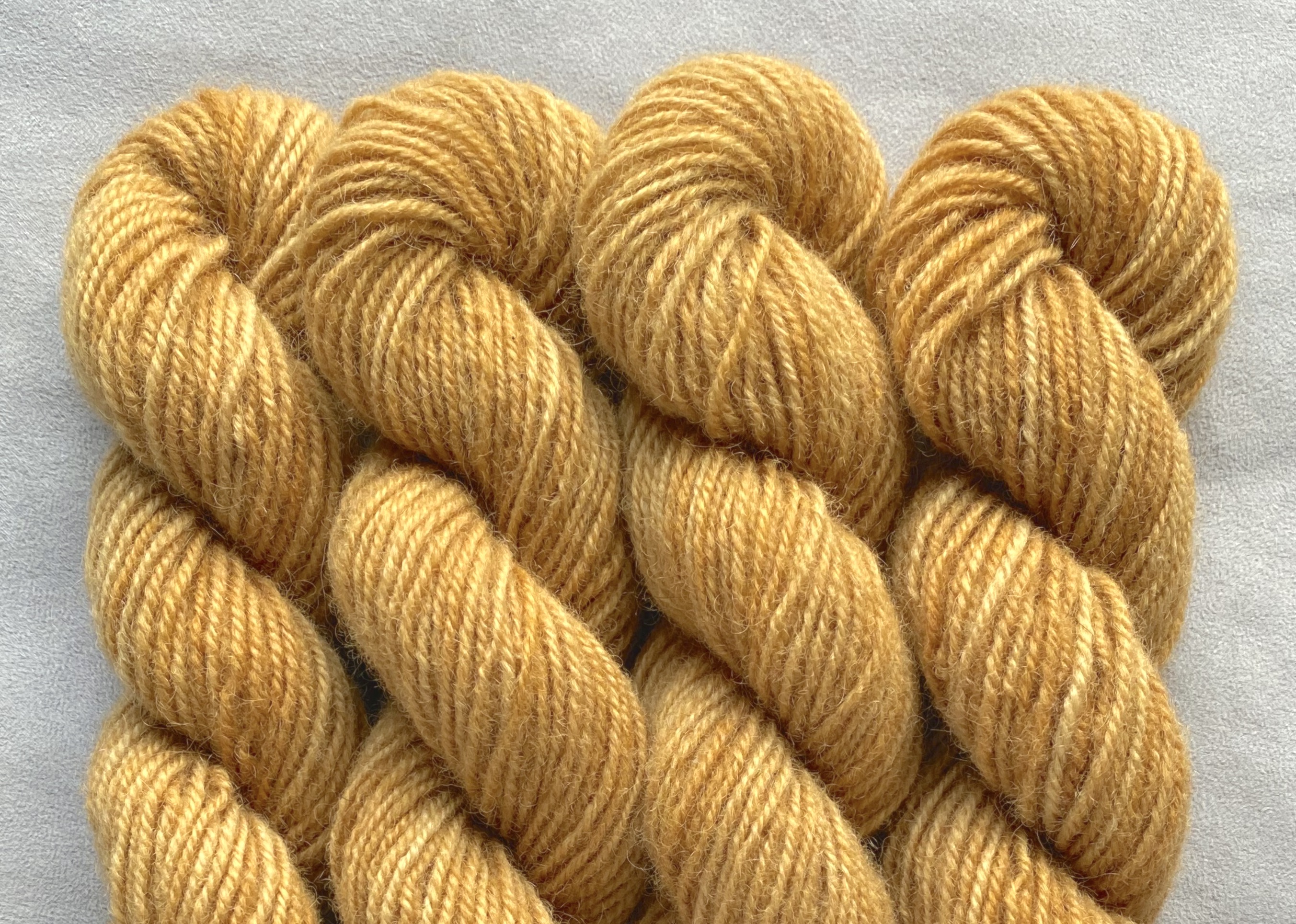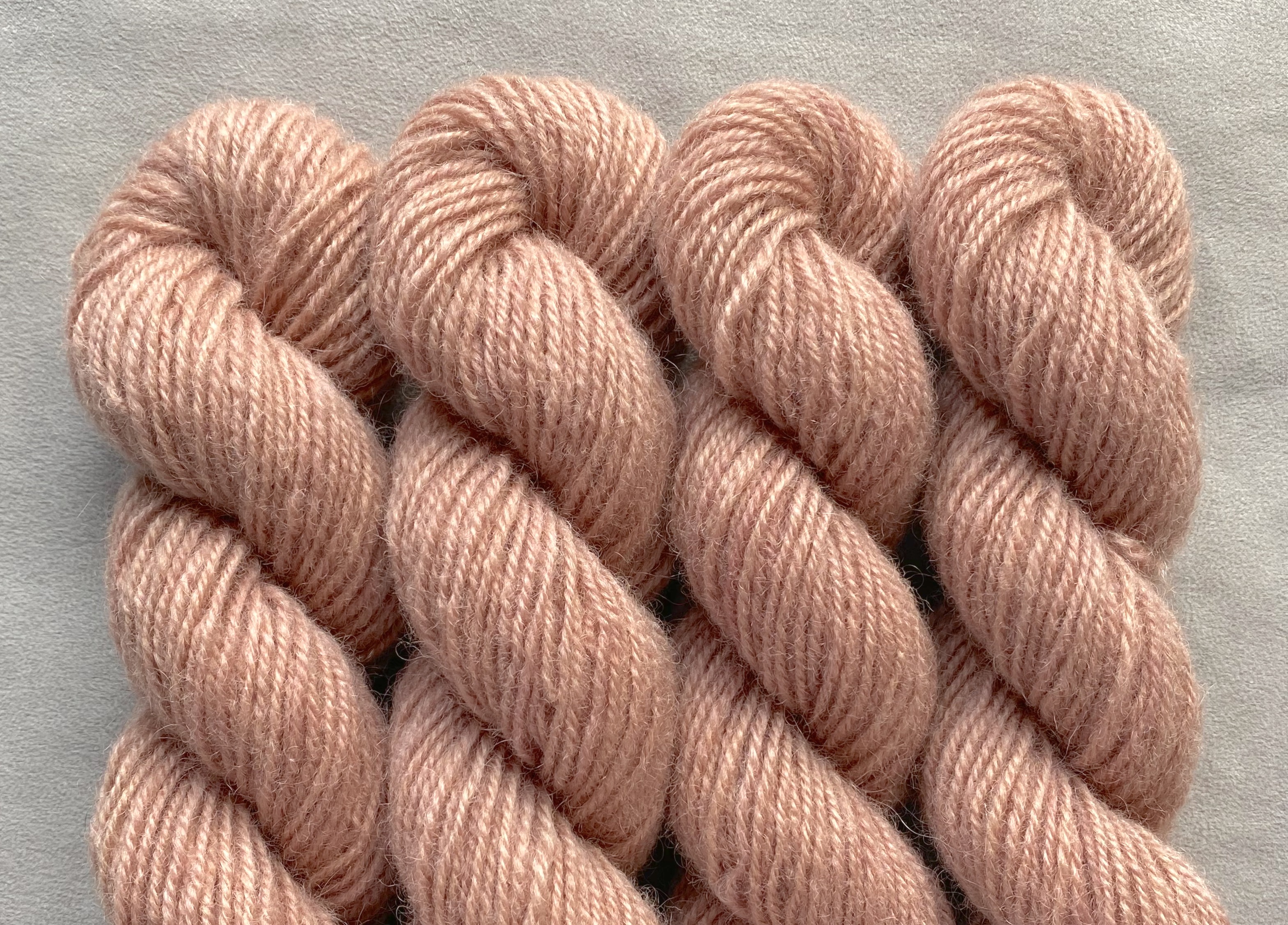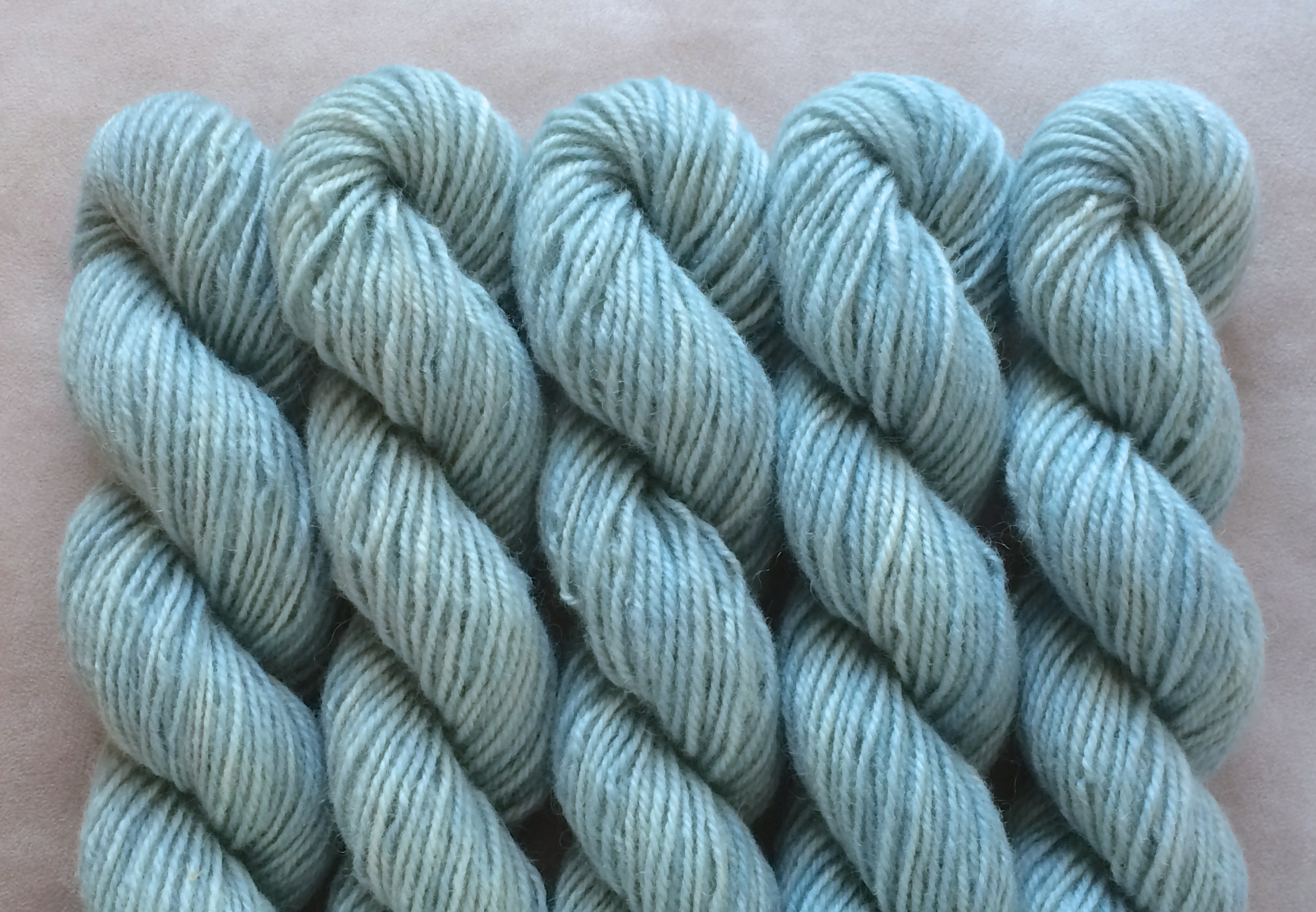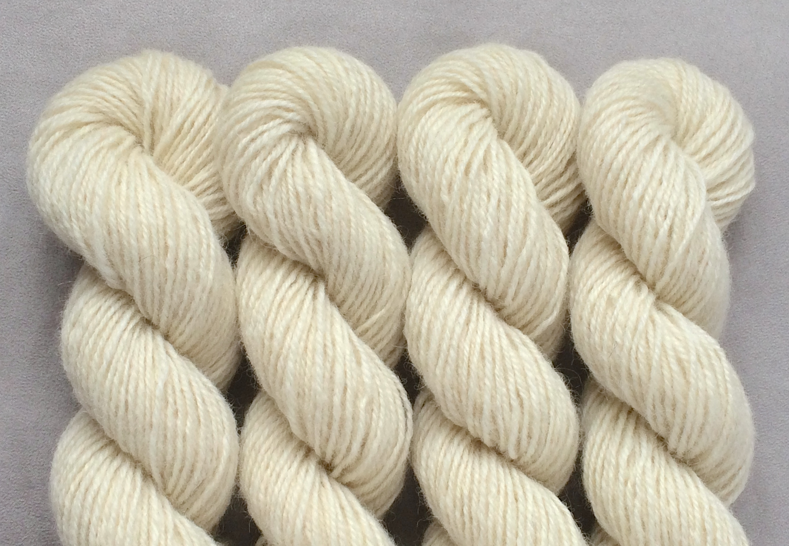 Of the white Leura wool that was sent to Pirtin Kehräämö mill in the early spring of 2020 less than half came back as natural white, quite tightly spun yarn that felt rougher than before. However, it became considerably softer when washed, and most importantly, took on dye well. Recommended needle size 3-4 mm.