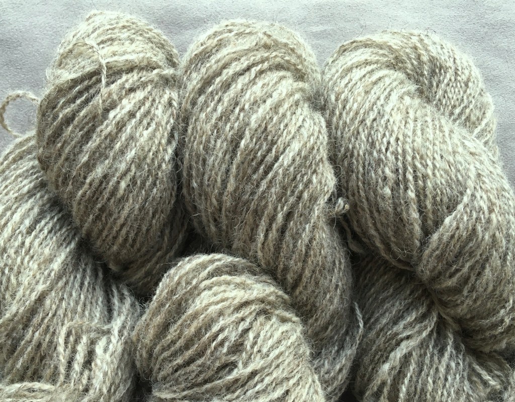 After over a two year wait I received a batch of beautiful grey 2 ply yarn from the wool mill, spun from the wool of Leura Gård’s sheep! It is very suitable for a bit lighter items, and I already started to knit a shawl of it according to this Strömsö design. The thickness of the yarn varies somewhat, which guarantees a nice lively finish!