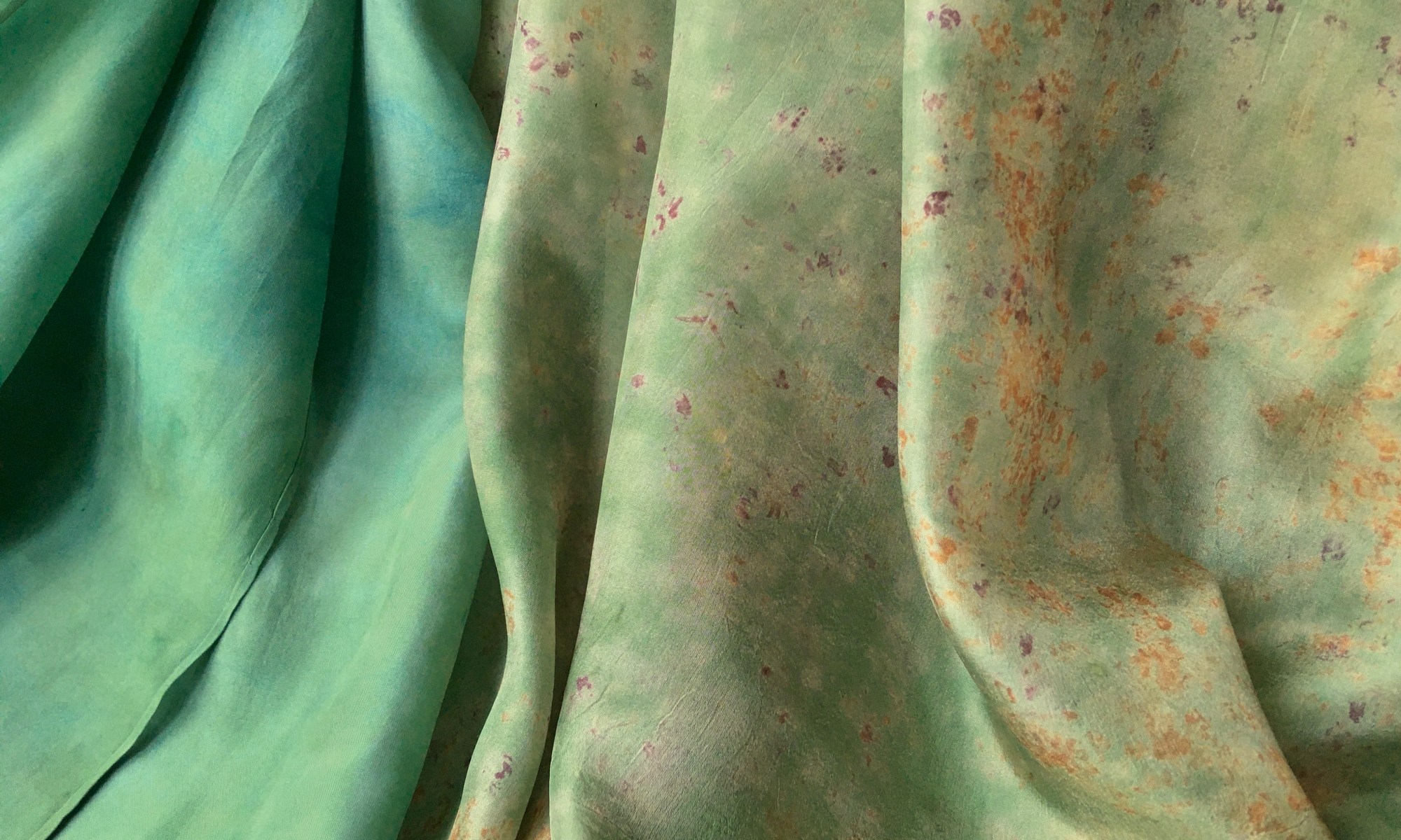 These colours I caught on silk from St John’s wort, creeping bellflower and columbine flowers, marigold petals and whole creeping sorrel plants.